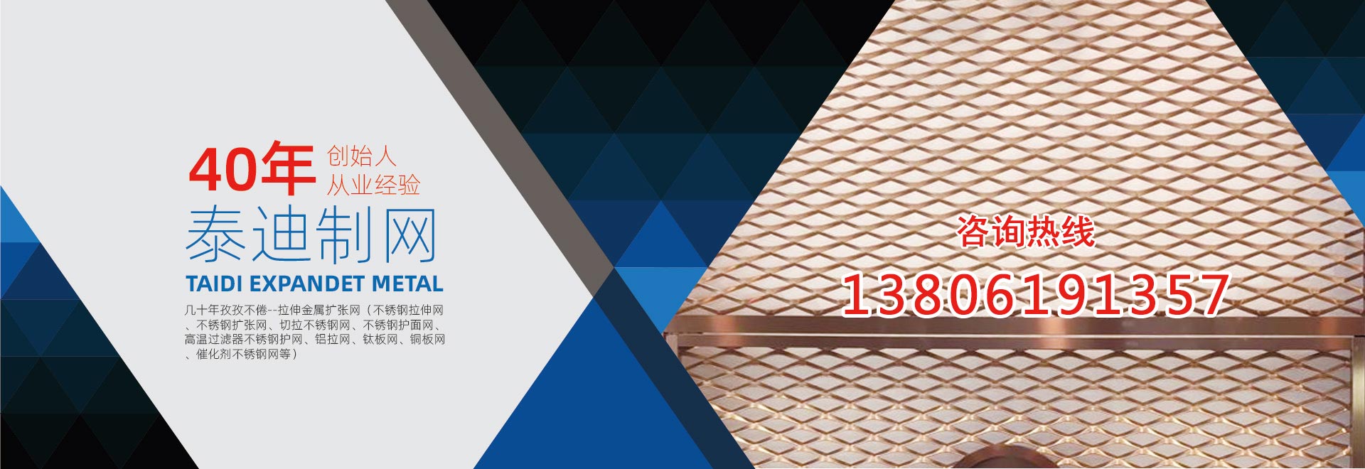 無錫泰迪環(huán)??萍加邢薰荆且患覍I(yè)生產(chǎn)金屬拉伸擴張網(wǎng)的企業(yè)。公司特長是:不銹鋼擴張網(wǎng)、拉伸擴張小孔、微孔網(wǎng)、奧氏體不銹鋼304、316網(wǎng)、超奧氏體不銹鋼網(wǎng)、鎳基不銹鋼的切拉擴張網(wǎng)生產(chǎn)、加工。產(chǎn)品包括:不銹鋼拉伸網(wǎng)、不銹鋼擴張網(wǎng)、切拉不銹鋼網(wǎng)、不銹鋼護面網(wǎng)、高溫過濾器不銹鋼護網(wǎng)、 板式催化劑不銹鋼網(wǎng)。復(fù)合針孔鋁板、針孔鋁拉網(wǎng)、微孔鋁板、微孔吸音鋁板、針孔吸音鋁板、微穿孔不銹鋼網(wǎng)、不銹鋼電池集流網(wǎng)、電池用不銹鋼網(wǎng)、鈦板網(wǎng)、不銹鋼板網(wǎng)、鎳板網(wǎng)、銅板網(wǎng)。鉛板網(wǎng)、超奧氏體不銹鋼板網(wǎng)、鎳基不銹鋼板網(wǎng),鋁拉網(wǎng)、鋁板拉伸網(wǎng)、拉伸屏蔽網(wǎng)、不銹鋼過濾器網(wǎng)、不銹鋼過濾網(wǎng),不銹鋼濾芯網(wǎng)、濾筒不銹鋼網(wǎng),音箱喇叭網(wǎng)罩。公司前身為13年成立的無錫泰迪金屬制品有限公司。公司創(chuàng)始人陳正芳先生從事切拉擴張網(wǎng)專業(yè)四十年,公司產(chǎn)品在總工程師繆志明(原上海中國鋼板網(wǎng)廠工程師)指導(dǎo)下,一直保持優(yōu)良品質(zhì)。